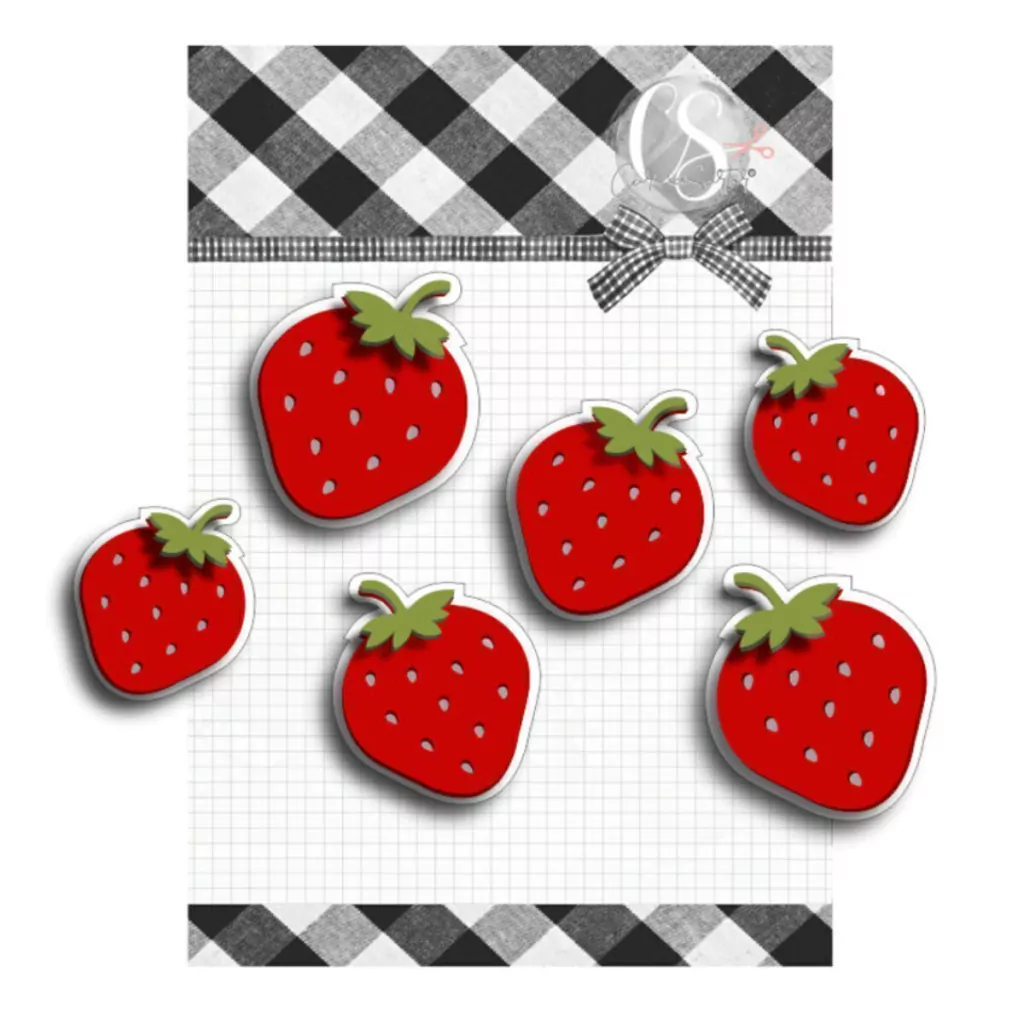 Morangos montagem em Acrílico 2mm e 3mm de 2 a 3,3cm - 6 peças.