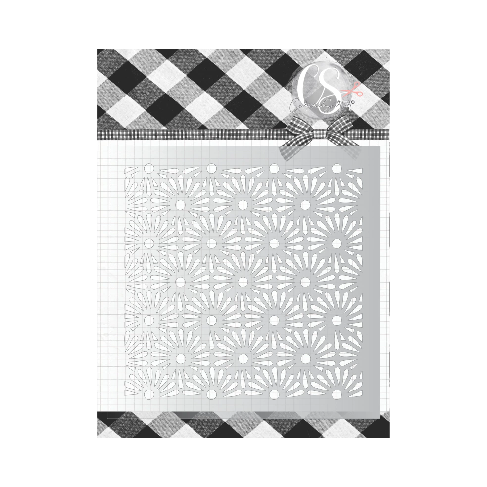 1 Stencil em PVC Branco 0,2mm. MARGARIDAS PADRÃO, Tamanho: 14X14cm