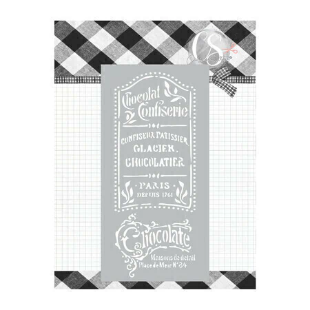 1 Stencil em PVC Branco 0,2mm Chocolate. Tamanho: 8X14cm.