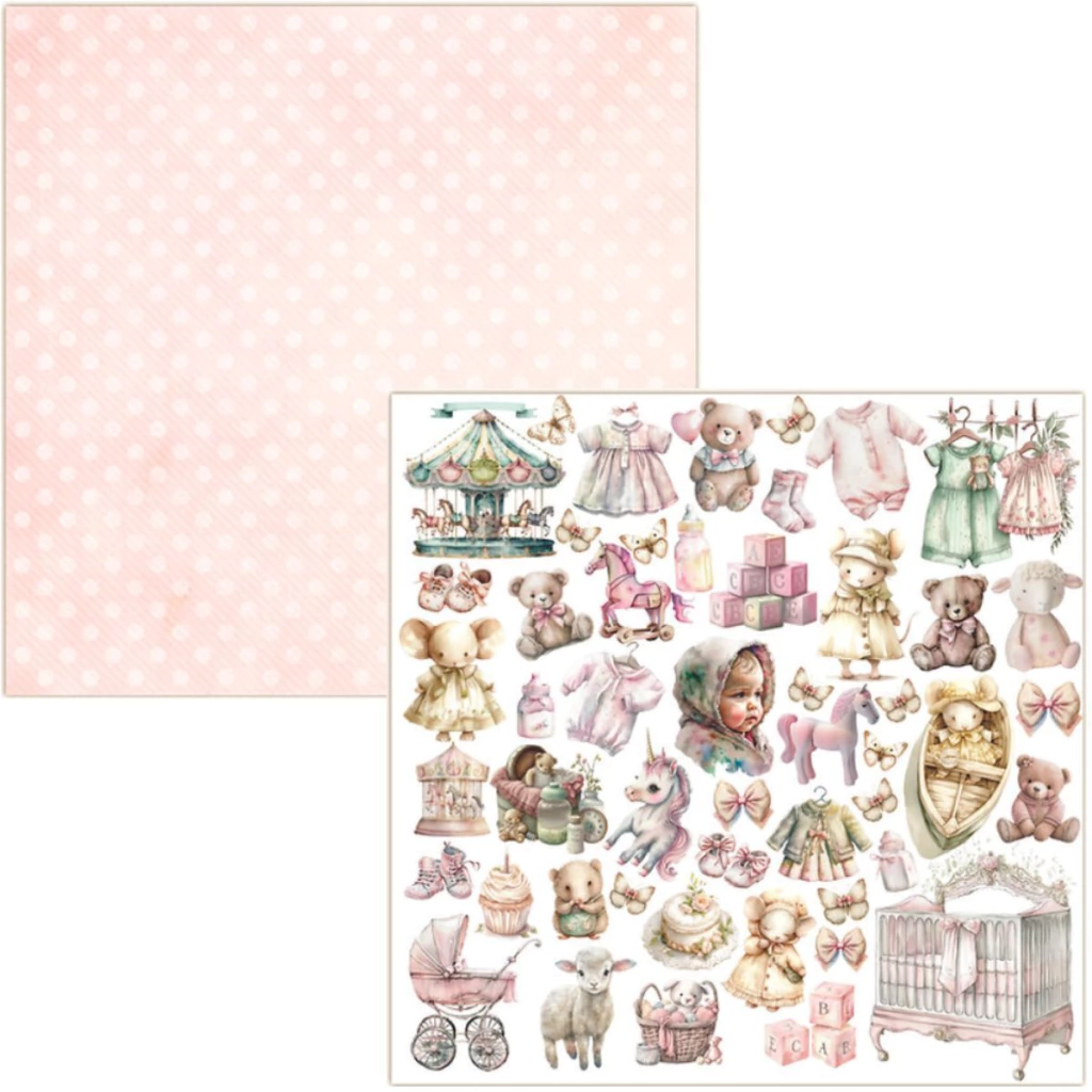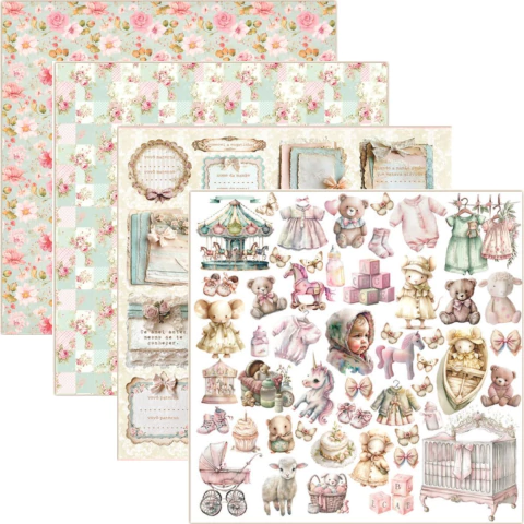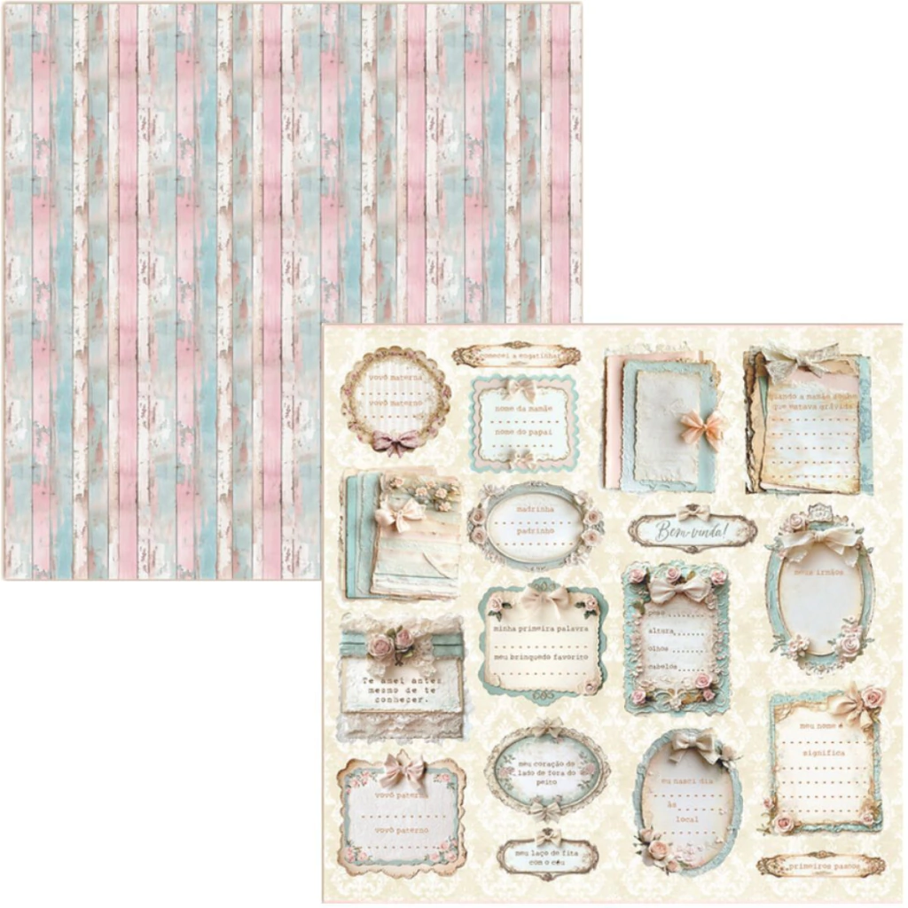 4 Papéis Scrap dupla face da Coleção "My baby" Menina MBB-01, MBB-02, MBB-03 e MBB-04 por Dany Peres.