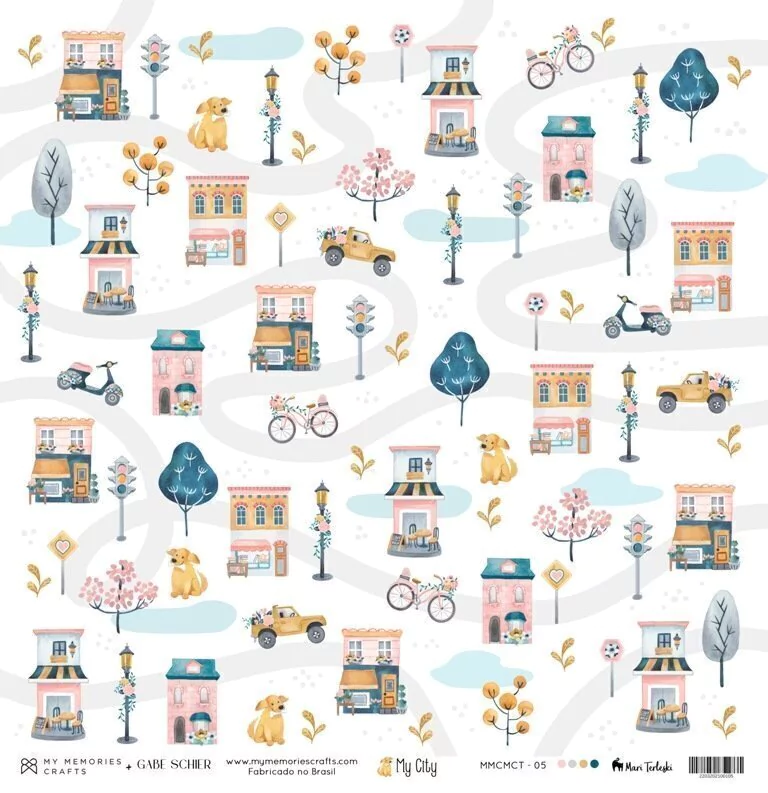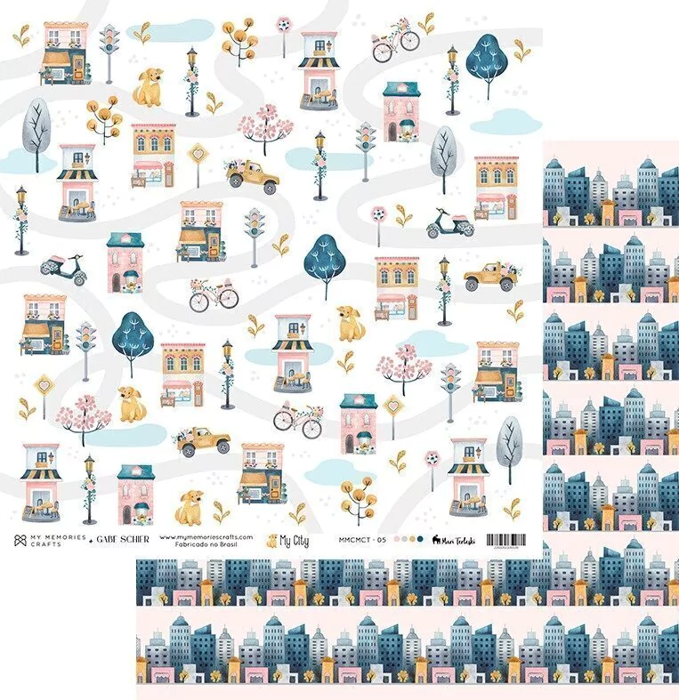 MCT-05 - Papel Scrapbook Duplo MY CITY 30,5x30,5cm - My Memories Crafts