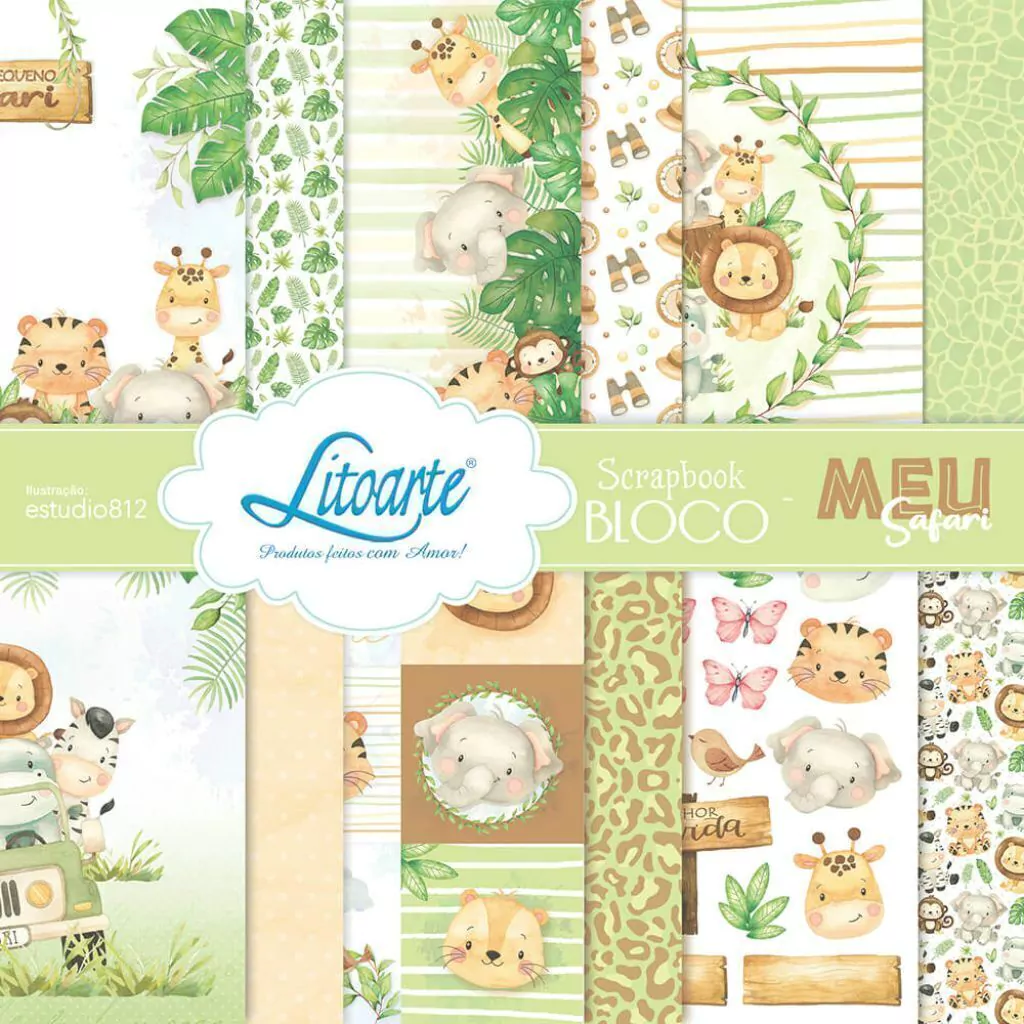 SBXV-051 Bloco de Papéis para Scrap Decor 15x15cm Coleção Meu Safari - Litoarte