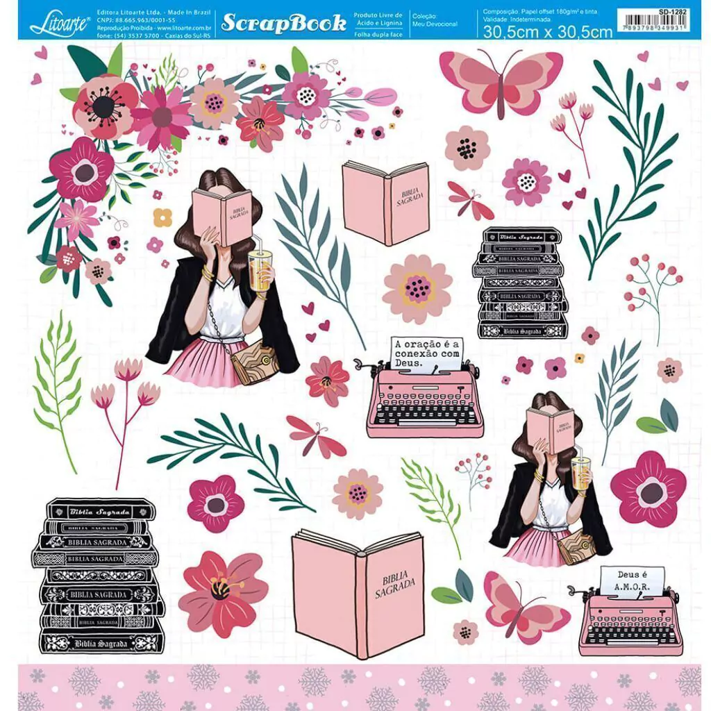Valor referente a 1 unidade do Modelo, conforme imagem. São papéis padrão Scrapbook, impresso frente e verso.