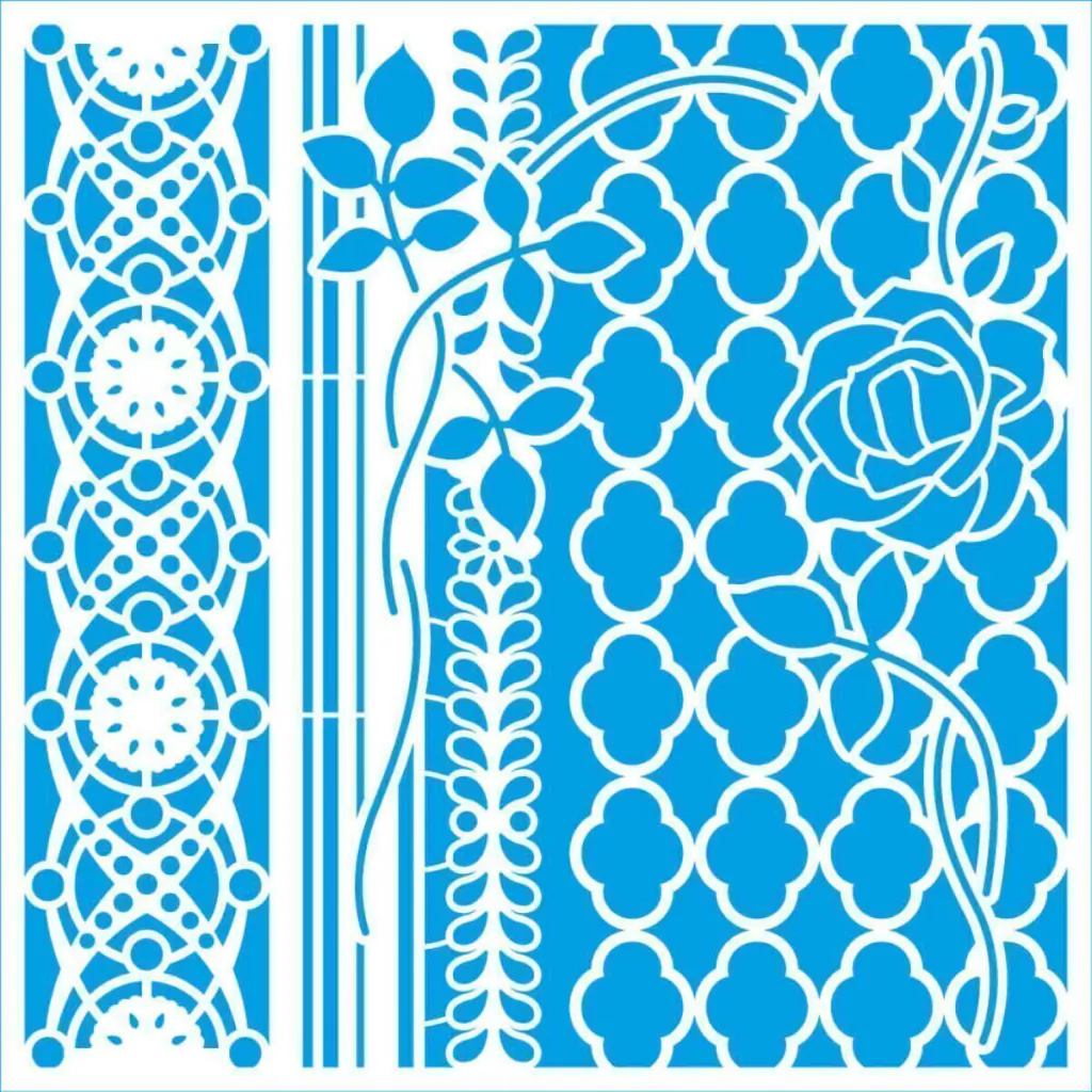 STM-773 - Stencil Médio 17x21cm Rosas - Litoarte
