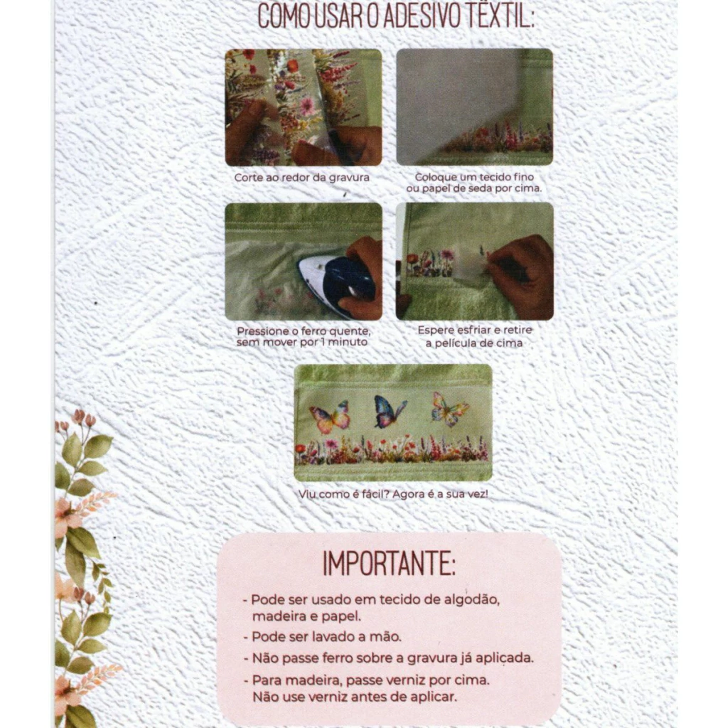 Valor referente a 1 cartela com Adesivos Têxtil PARA TECIDO no tamanho A4 (21x29,7cm), conforme a imagem.